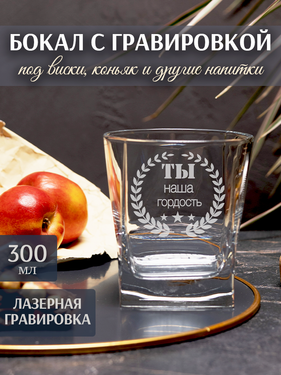 Бокал под виски “Ты наша гордость” без упаковки подарочный с лазерной гравировкой. Бокалы для виски – это не просто посуда, это настоящее произведение искусства. Они изготовлены из высококачественного стекла, которое не только выглядит стильно и элегантно, но и обеспечивает идеальную прозрачность напитка.