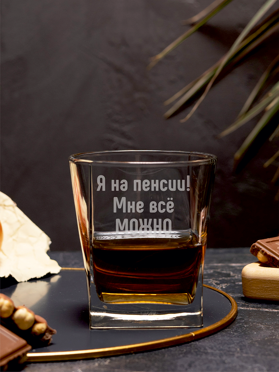 Бокал под виски с гравировкой “Я на пенсии, мне все можно”