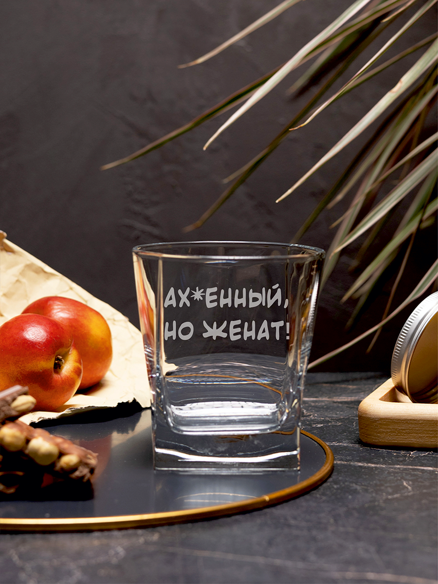Бокал под виски с надписью Ахиренный но женат