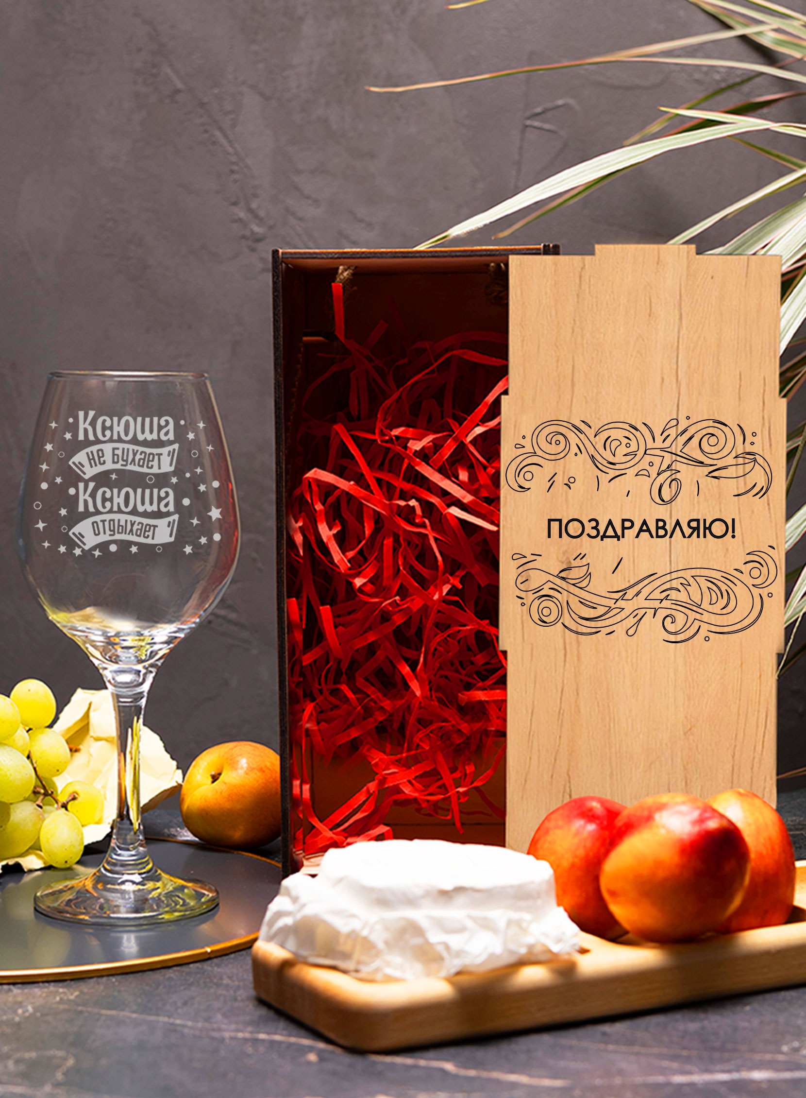 Будьте первым, кто оставит отзыв “Бокал с гравировкой под вино в подарок Ксюша не бухает”
