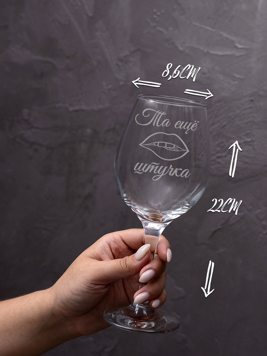 Винный бокал с уникальной гравировкой «Та ещё штучка» — идеальный подарок для женщин на 8 Марта, День Валентина, Новый год и день рождения! Этот бокал станет не только приятным сюрпризом, но и стильным аксессуаром для вашего дома или офиса. Гравировка выполнена в виде шуточного текста, который придется по вкусу любой девушке. Бокал подойдет как для жены, коллеги, так и для сестры в качестве прикольного подарка на 8 Марта. Наполнив бокал любимым напитком, женщина оценит не только качество гравировки, но и удобство и красоту самого бокала. Этот бокал будет идеальным подарком для девушки, которая ценит юмор, любит хорошо провести время и умеет наслаждаться жизнью. Подарите своим близким незабываемые моменты и радость с бокалом «Та ещё штучка». Бокалы имеют удобную форму, которая позволяет легко наливать напиток и наслаждаться его вкусом. Такая декоративная посуда — это не только красивый, но и практичный подарок. Они прослужат долго и будут радовать своего владельца каждый раз, когда он будет пить свой любимый напиток. Бокалы выполнены из высококачественного стекла, что гарантирует их долговечность и надежность. Мы очень внимательны к упаковке своих товаров. Вы можете не беспокоиться. Бокал дойдёт в целости и сохранности, он надежно упакован. Наши подарочные бокалы станут приятным украшением для дома и останутся в долгой памяти у получателя подарка.