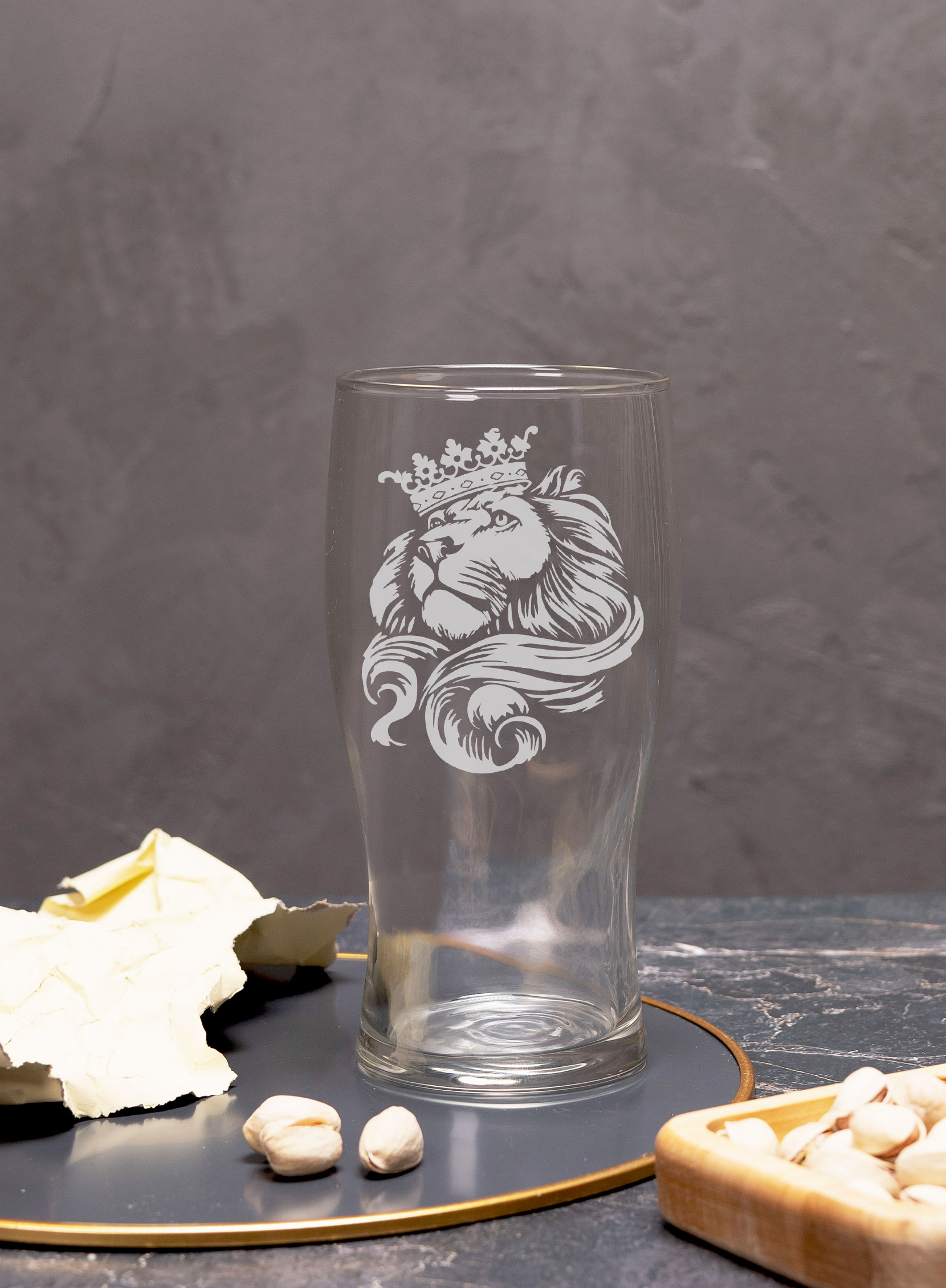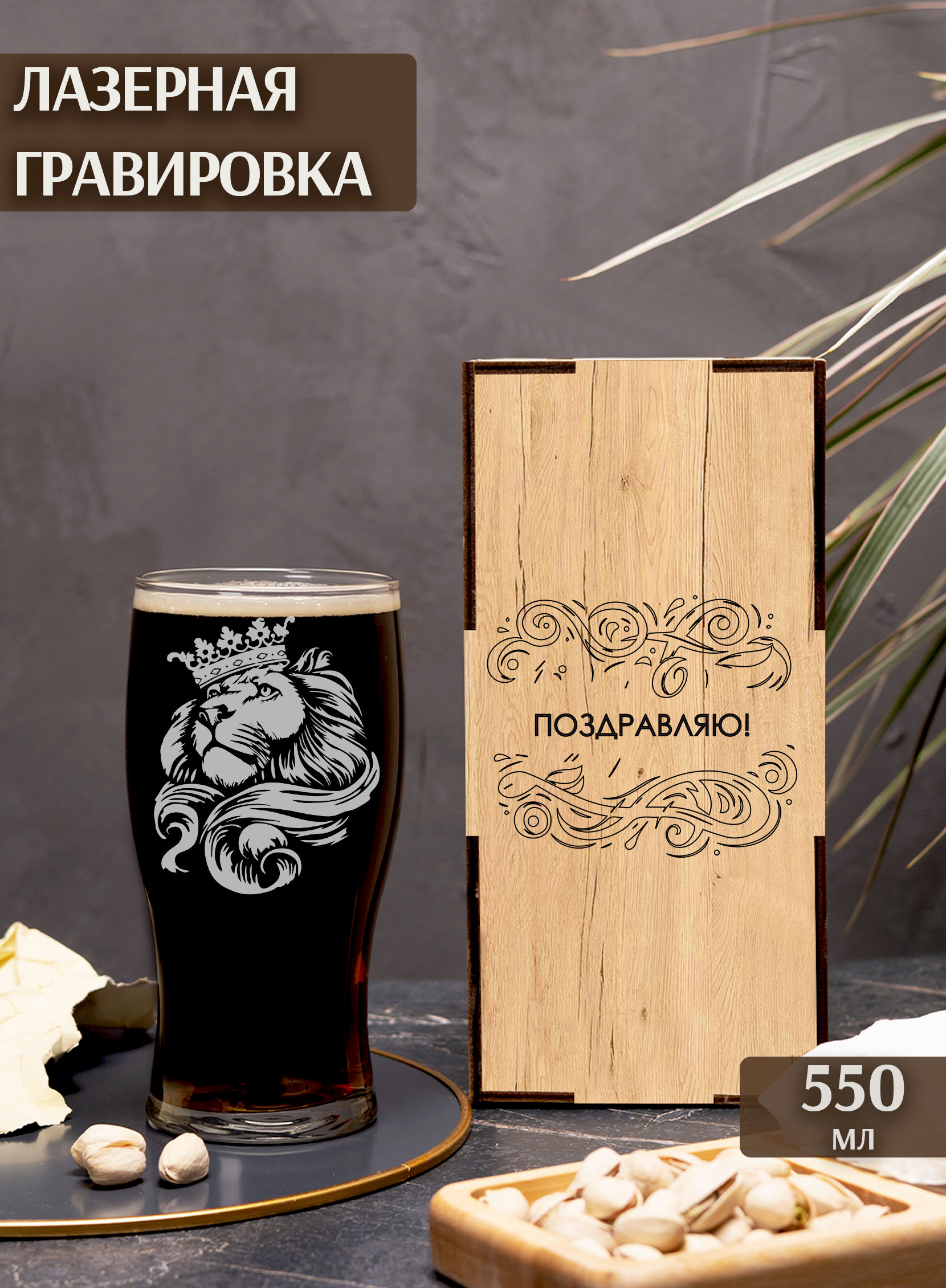 Изысканный подарочный бокал с утончённой гравировкой в виде величественного льва — это воплощение стиля и благородства в каждой детали. Изделие покоряет с первого взгляда своим безупречным исполнением и помещается в элегантную подарочную коробку из натурального МДФ, изготовленную вручную с особой тщательностью.