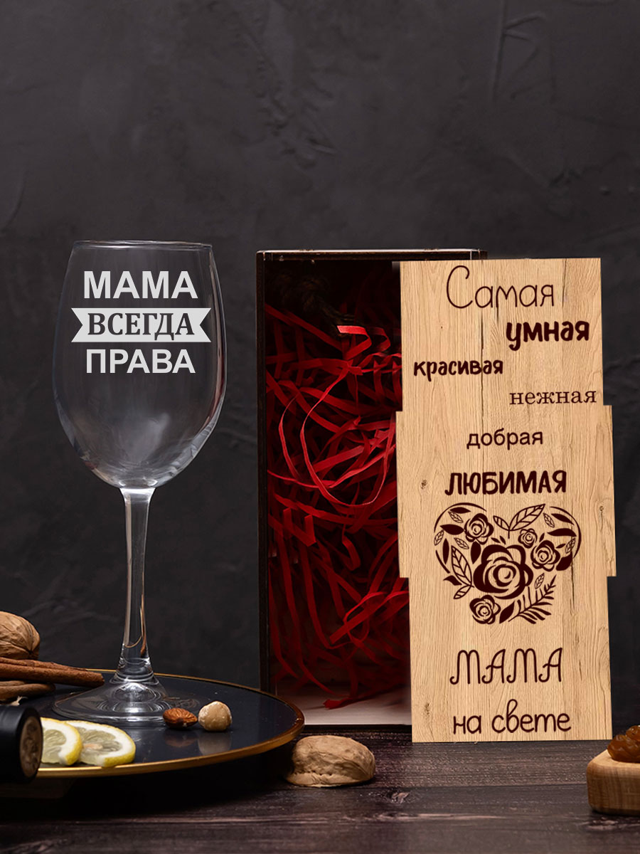 Оригинальный подарок маме — это не просто предмет, а выражение любви и заботы, упакованное в красивую обёртку. Представляем вашему вниманию изысканный подарочный бокал с забавной, но такой правдивой надписью «Мама всегда права», который станет настоящим украшением любого праздника.