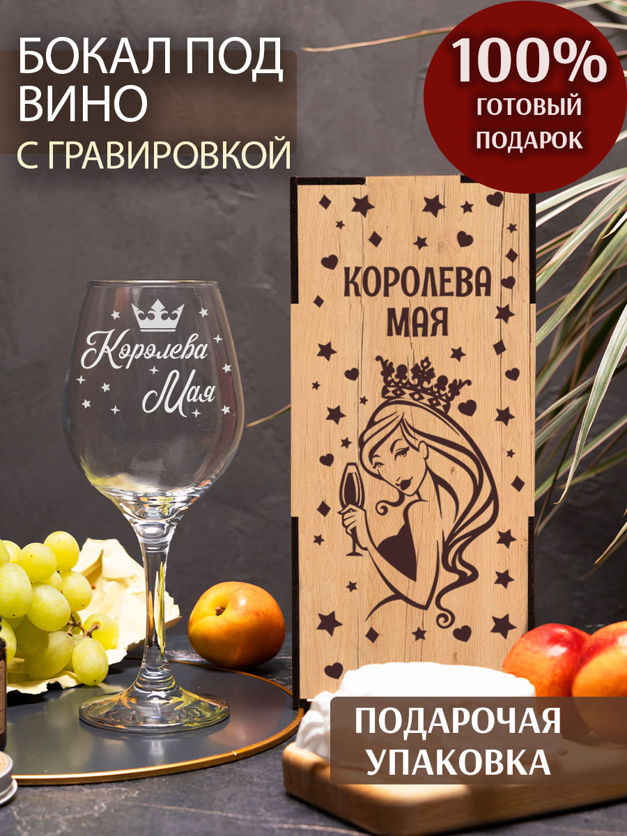 Итак, бокал с гравировкой для вина «Королева мая» — это универсальный и стильный подарок, который подойдет для любой женщины.