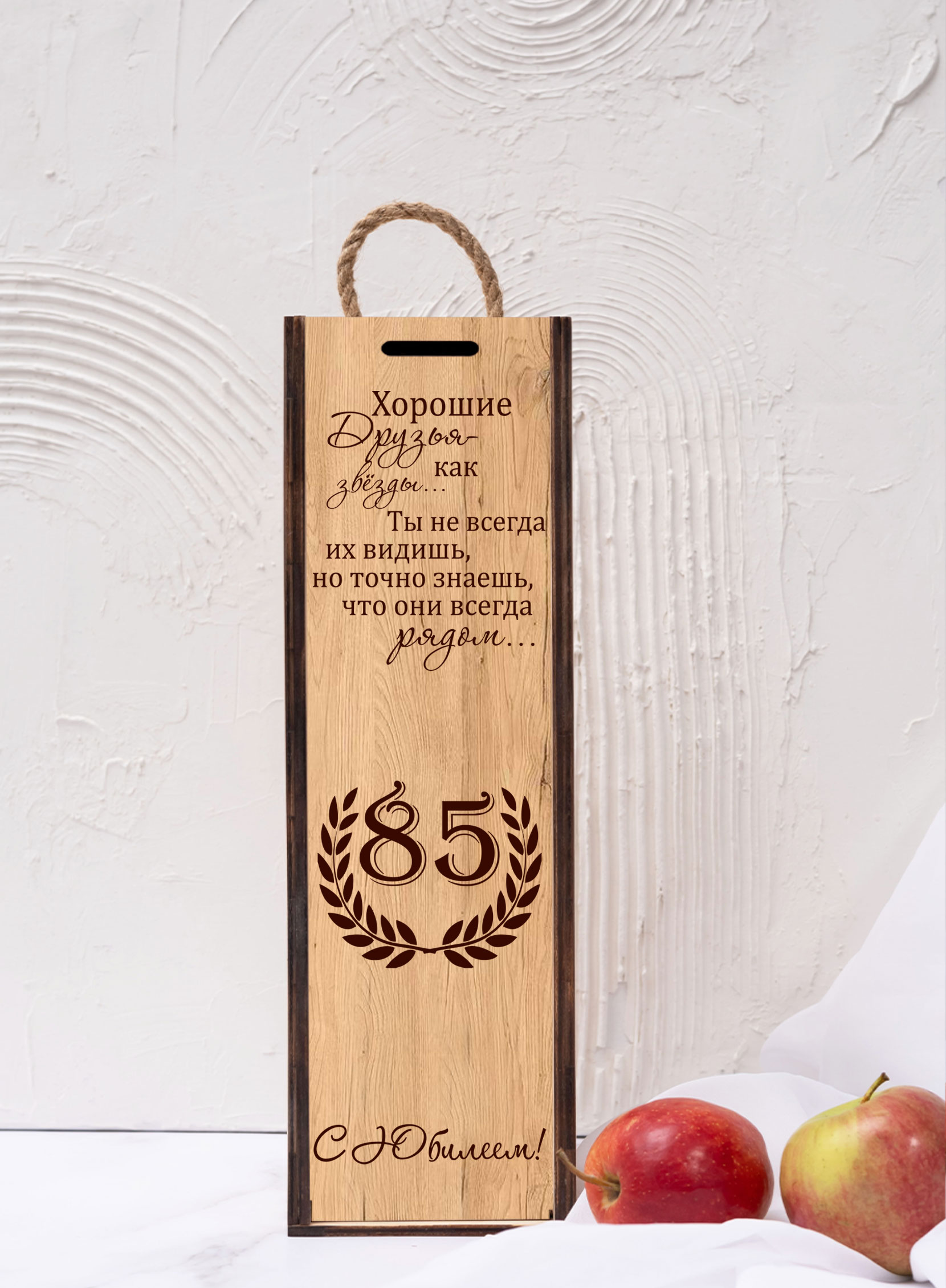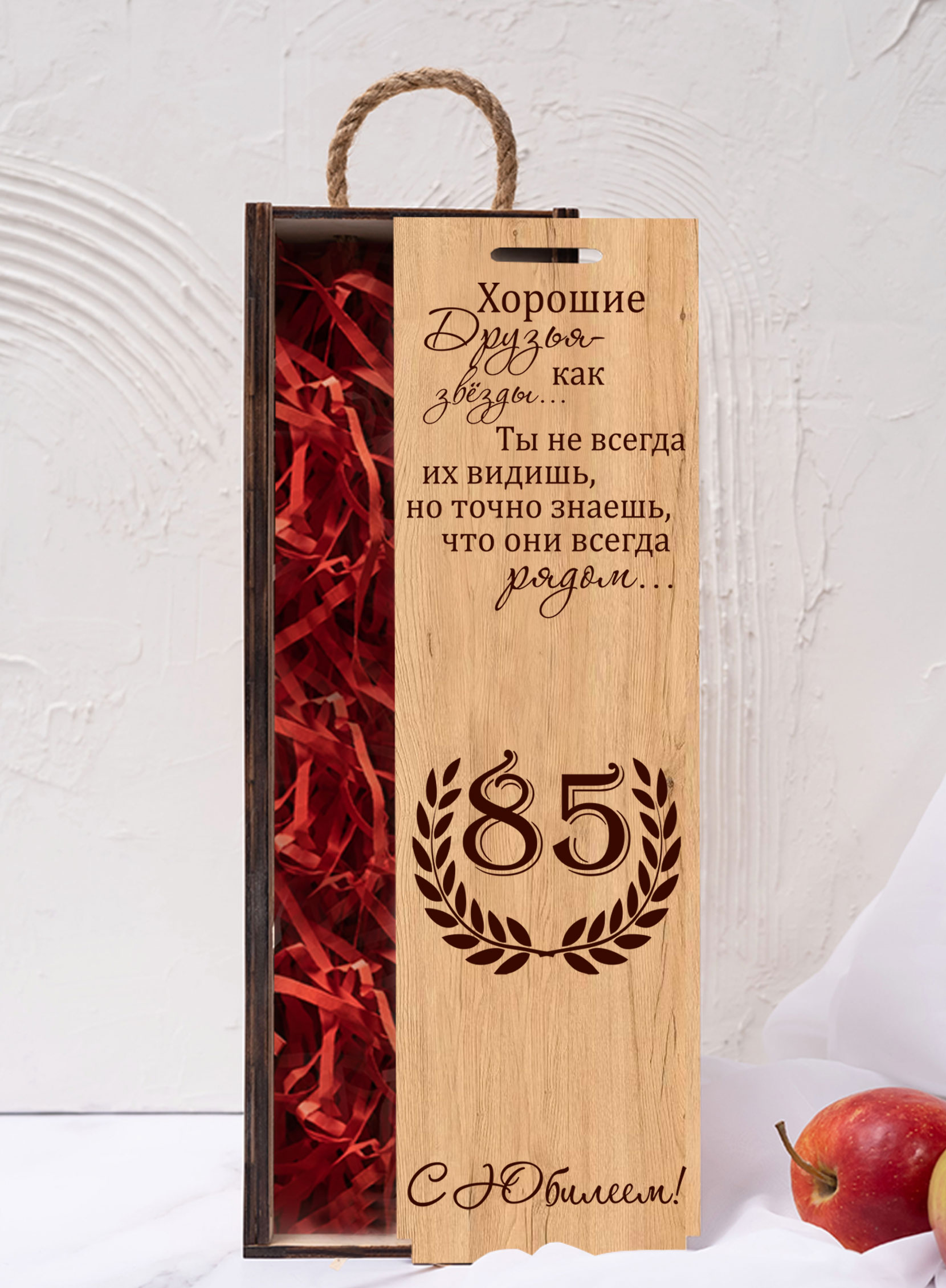 Идеальный подарок для особого события — подарочный деревянный короб для бутылки вина с гравировкой «С юбилеем, восьмидесятипятилетием». Такой подарок не только позволит упаковать бутылку вина на праздник, но и станет запоминающимся сувениром, который будет радовать долгие годы.