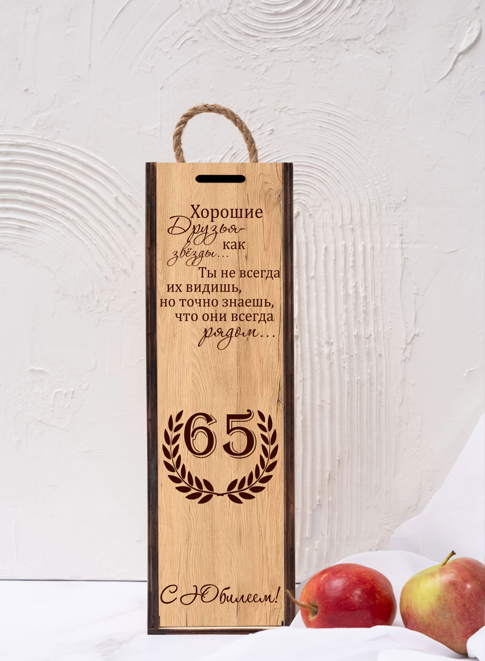 Идеальный подарок для особого события — подарочный деревянный короб для бутылки вина с гравировкой «С юбилеем, шестидесятипятилетием». Такой подарок не только позволит упаковать бутылку вина на праздник, но и станет запоминающимся сувениром, который будет радовать долгие годы.