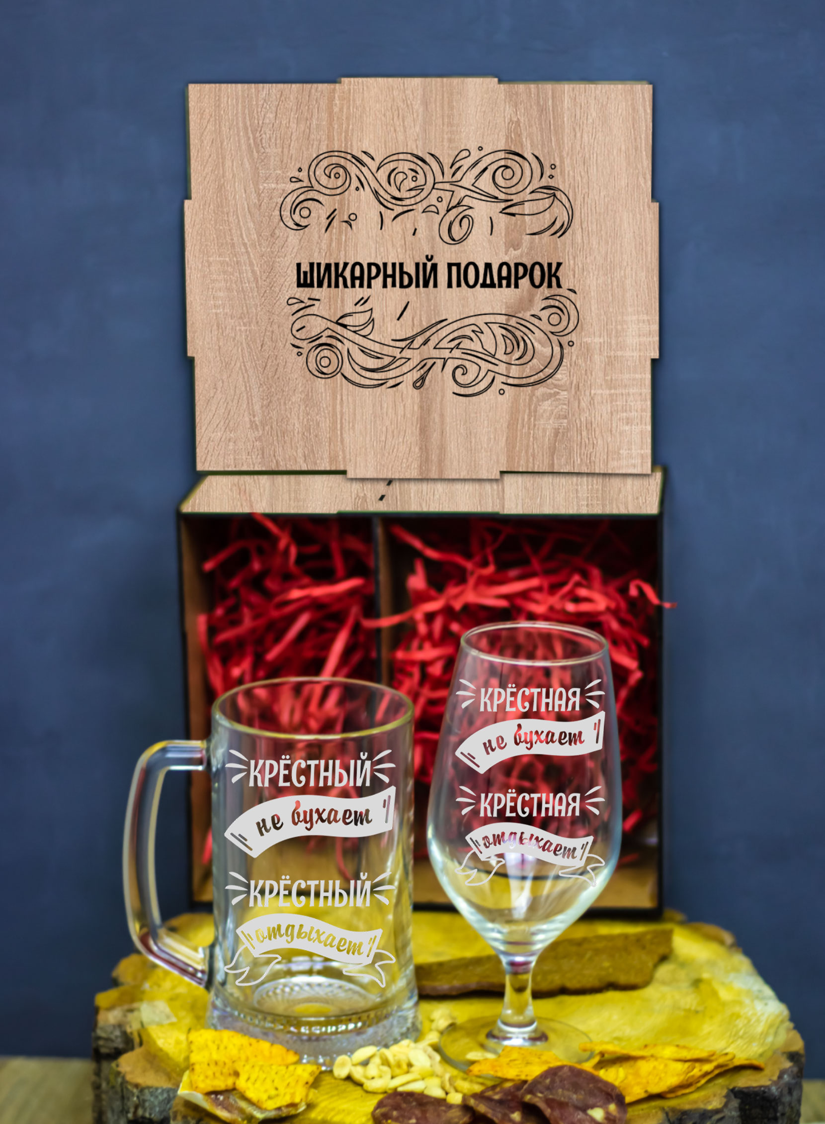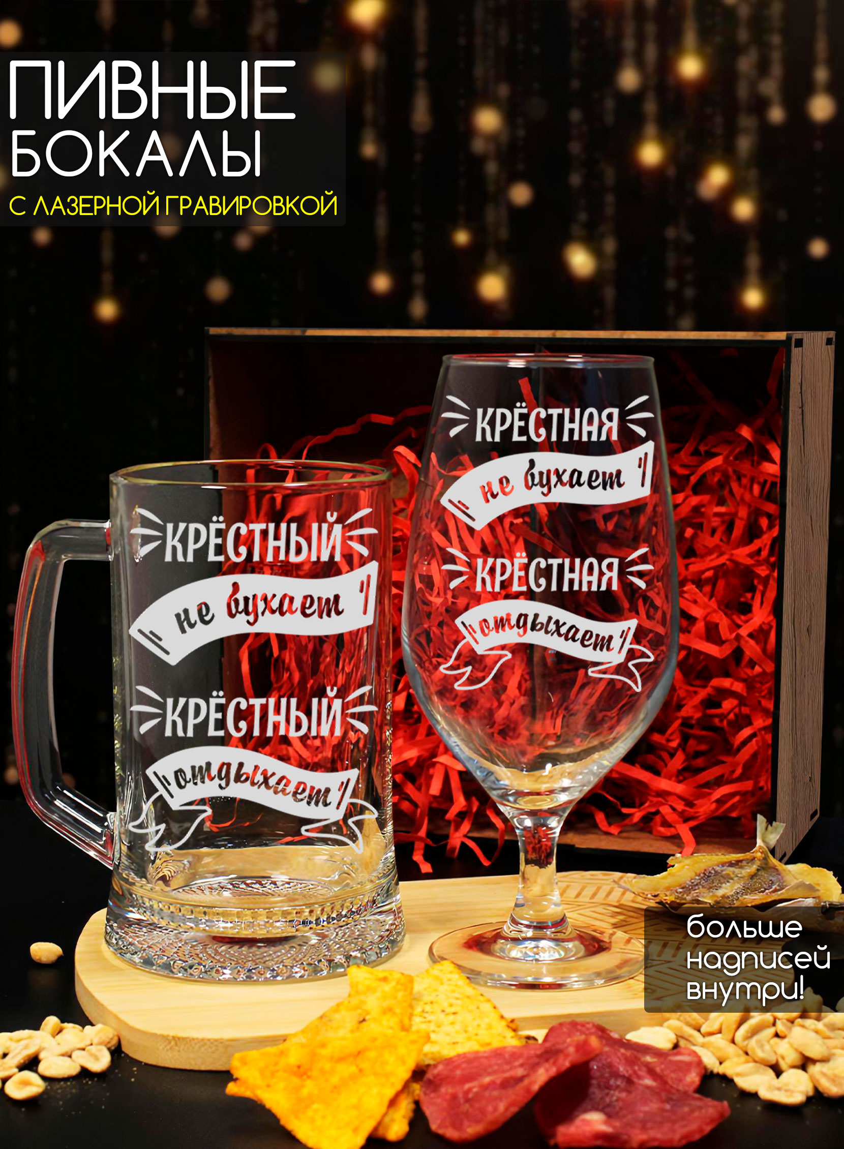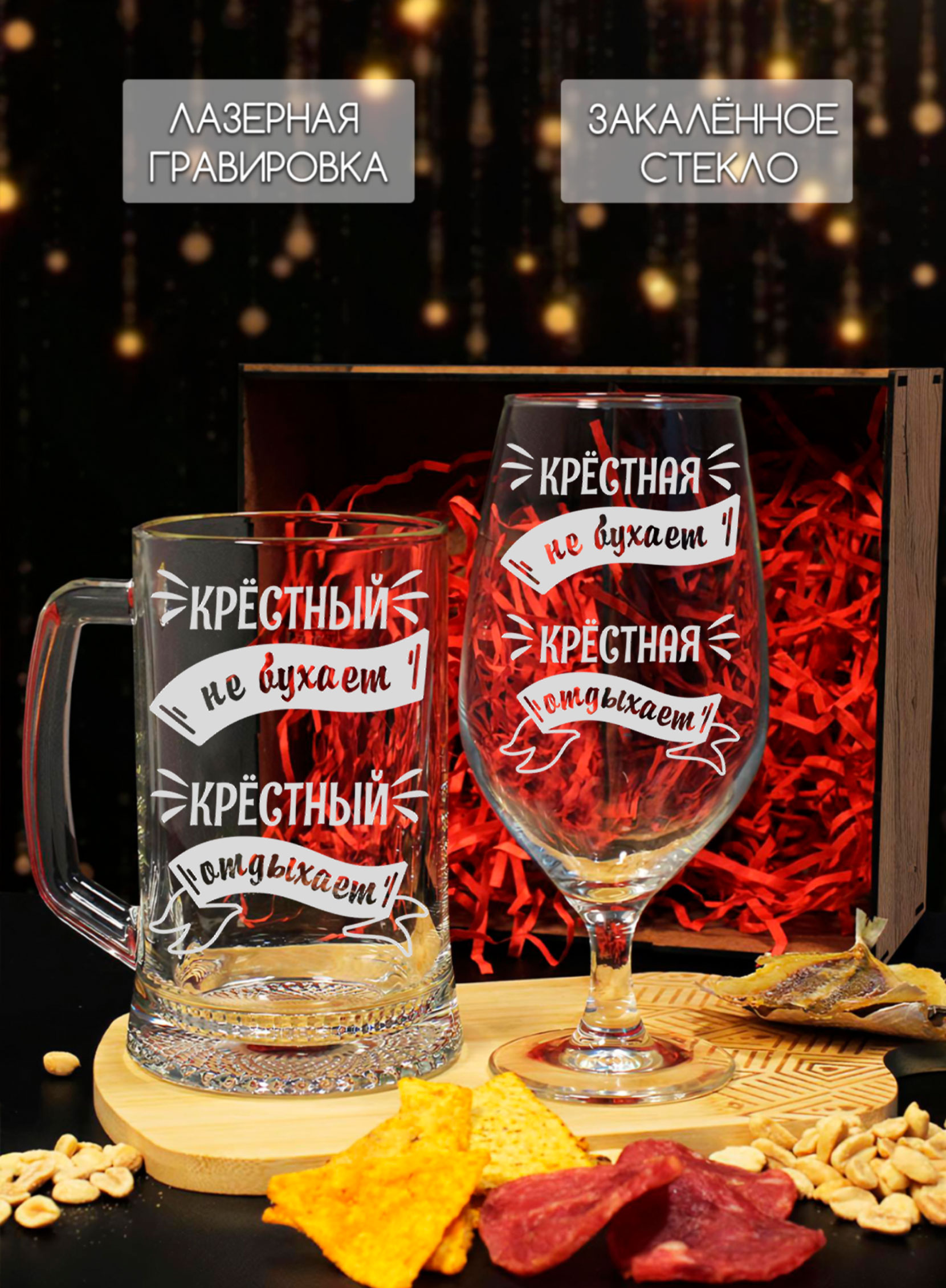 Подарок крёстному и крёстной — это тоже история о заботе и уважении. Эти пивные бокалы отлично подойдут для того, чтобы разделить приятные моменты вместе. Качество изготовления и оригинальный дизайн выделяют набор среди других.