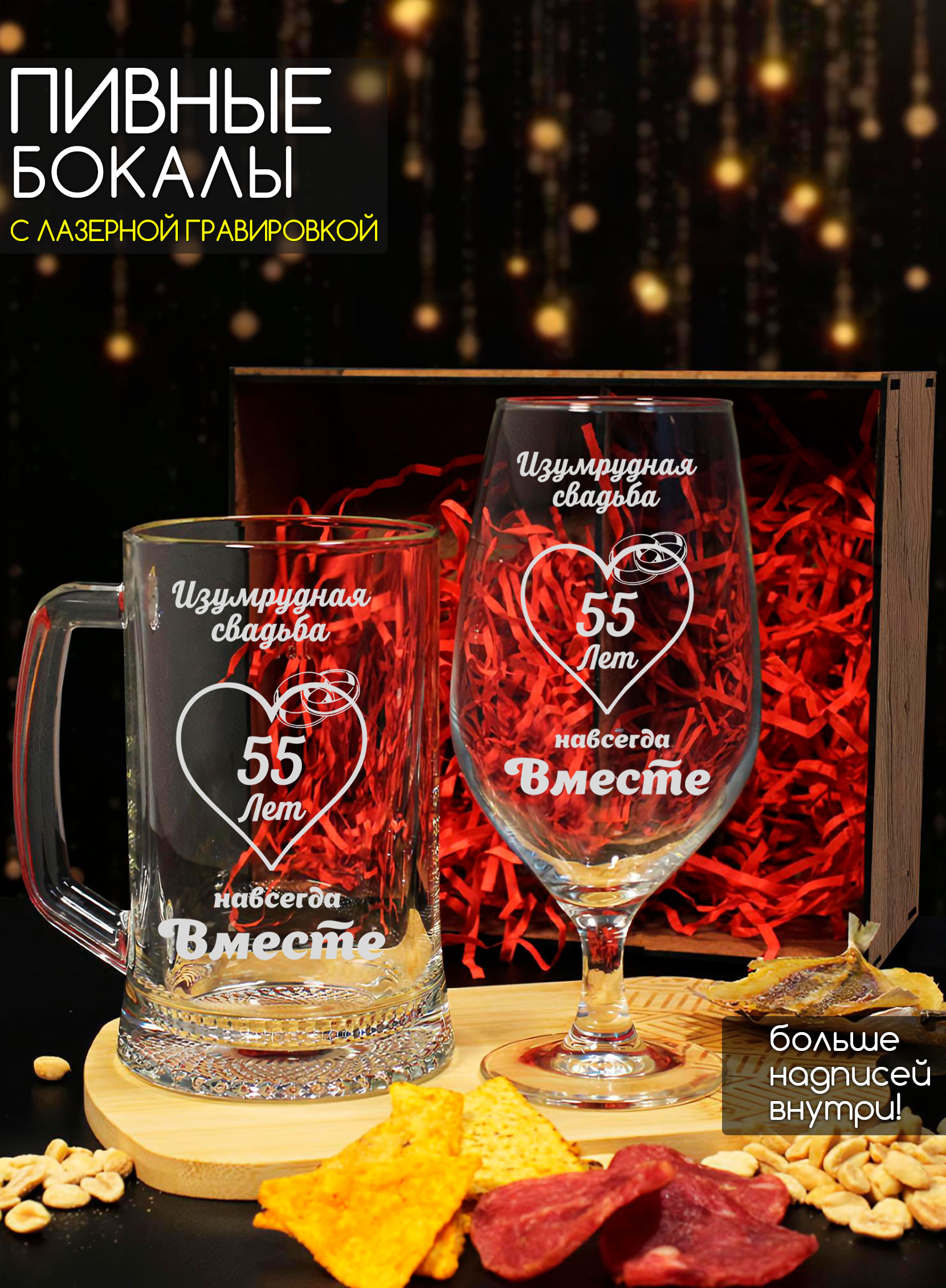Набор пивных бокалов с гравировкой Изумрудная свадьба 55 лет