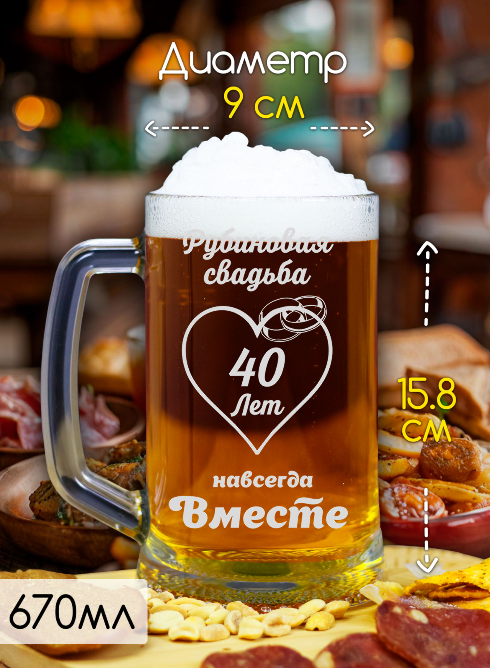 Пивной набор бокалов с гравировкой на годовщину Рубиновой свадьбы 40 лет, идеально подойдет в качестве оригинального и практичного подарка. Это изысканный и практичный предмет для украшения стола во время торжества или ужина. Бокалы с гравировкой на юбилей свадьбы будет отличным сюрпризом юбилярам. Независимо от причины торжества, будь то день свадьбы, годовщина или юбилей – набор бокалов станет отличным подарком для молодоженов, супругов, друзей, родителей, родственников, коллеги или близкого человека. Наши бокалы можно купить как дополнение к основному подарку или как памятный презент для влюбленной пары. Они впишутся в любой интерьер и будут напоминать супругам о прекрасном памятном дне каждую годовщину. На бокалы жениха и невесты нанесена лазерная гравировка, которая не смоется и будет долго сохранять свой вид.