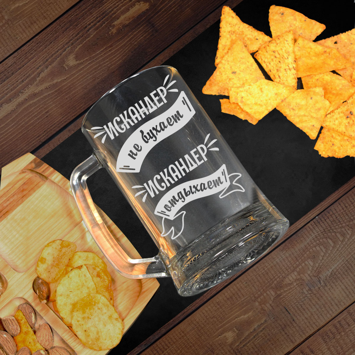 Пивная кружка с оригинальной гравировкой – это отличный подарок для близких и друзей! Наша дизайнерская посуда выполнена из закалённого стекла и имеет классическую цилиндрическую форму с ручкой. Объем кружки составляет 670 мл, и она идеально подходит для пенного напитка.