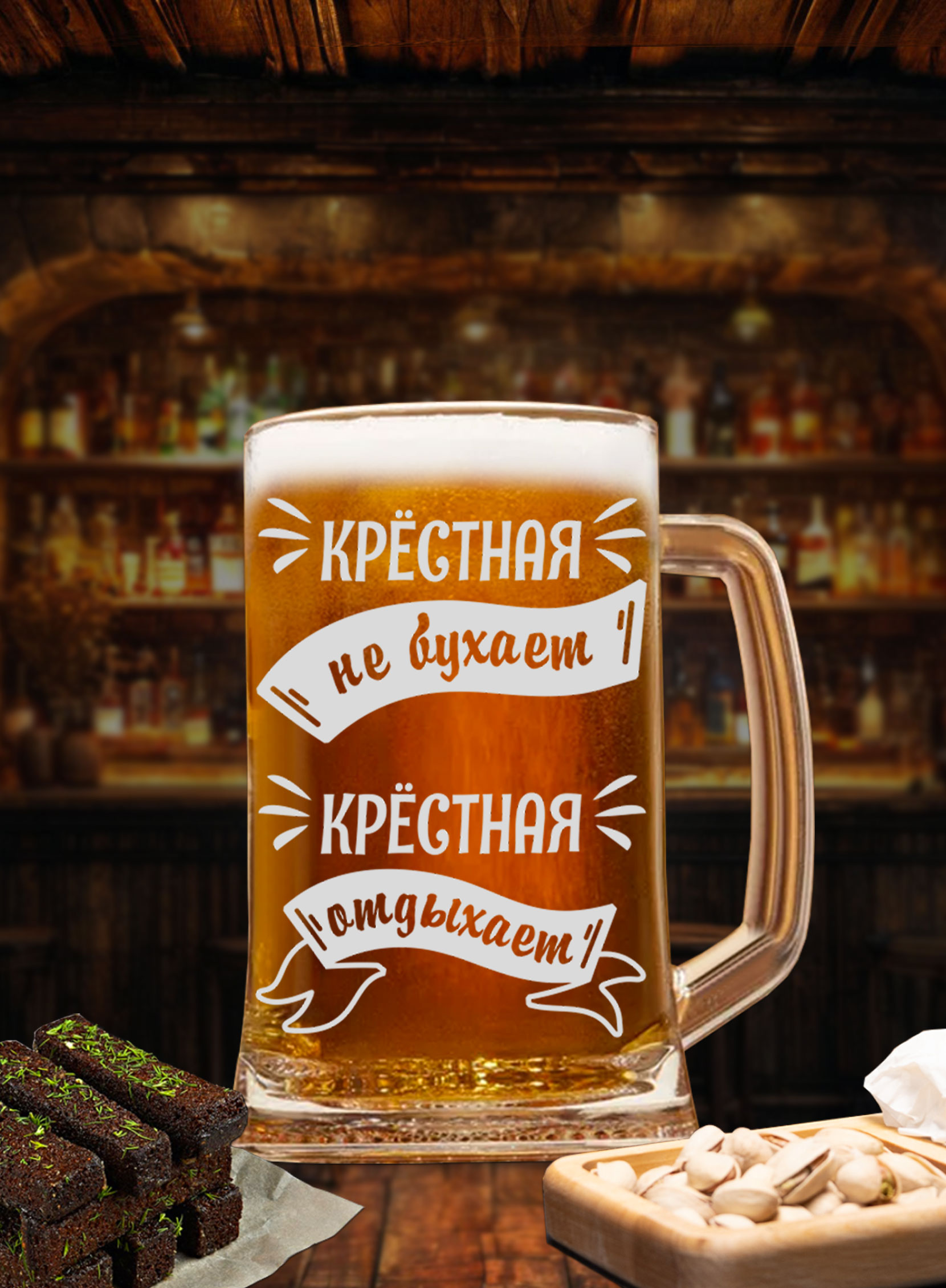 Пивная кружка с оригинальной гравировкой – это отличный подарок для близких и друзей! Наша дизайнерская посуда выполнена из закалённого стекла и имеет классическую цилиндрическую форму с ручкой. Объем кружки составляет 670 мл, и она идеально подходит для пенного напитка.