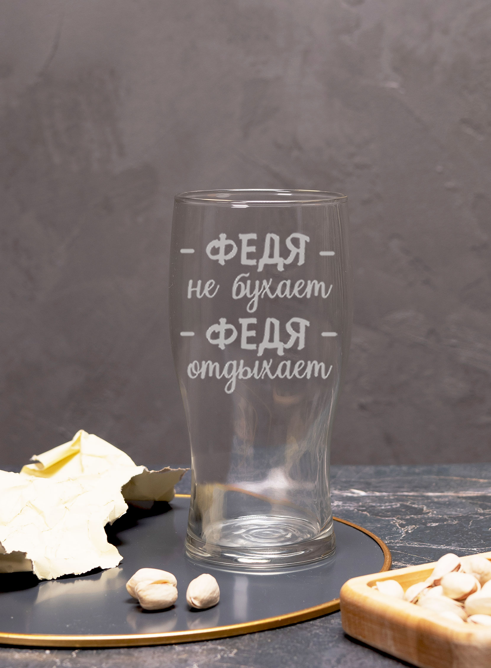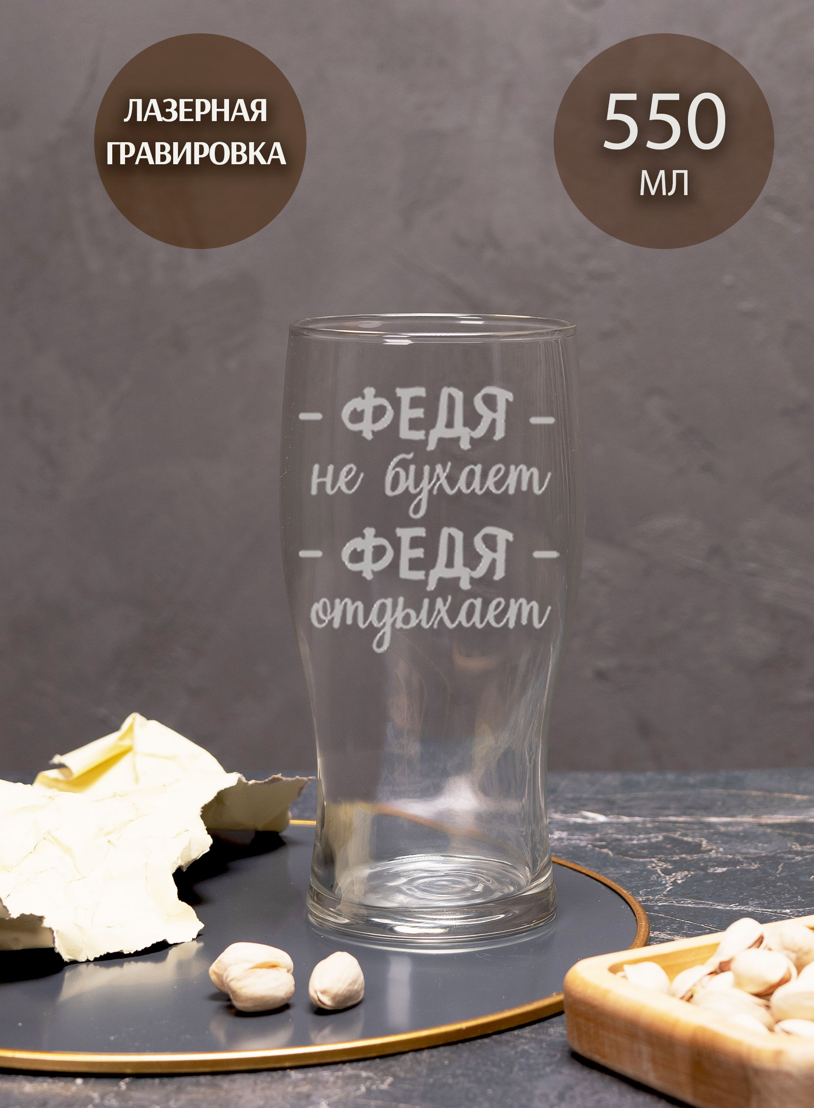 Бокал пивной “Федя не бухает, Федя отдыхает” с упаковкой 550мл подарочный с лазерной гравировкой. Бокалы для пива – это не просто посуда, это настоящее произведение искусства. Они изготовлены из высококачественного стекла, которое не только выглядит стильно и элегантно, но и обеспечивает идеальную прозрачность напитка.