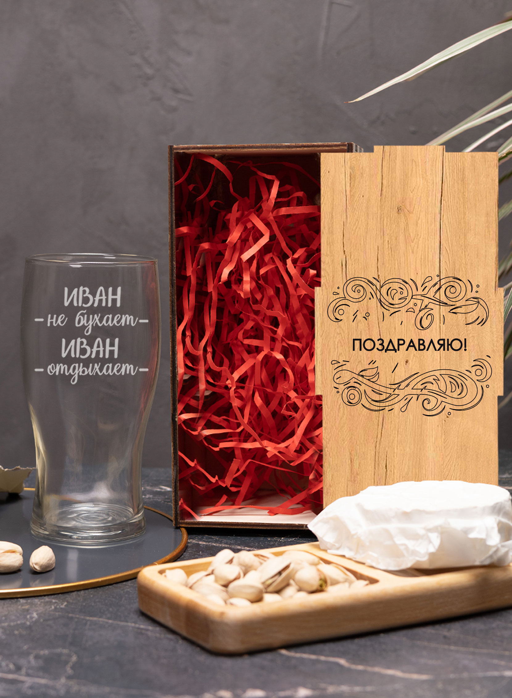 Бокал пивной “Иван не бухает, Иван отдыхает” с упаковкой 550мл подарочный с лазерной гравировкой. Бокалы для пива – это не просто посуда, это настоящее произведение искусства. Они изготовлены из высококачественного стекла, которое не только выглядит стильно и элегантно, но и обеспечивает идеальную прозрачность напитка.
