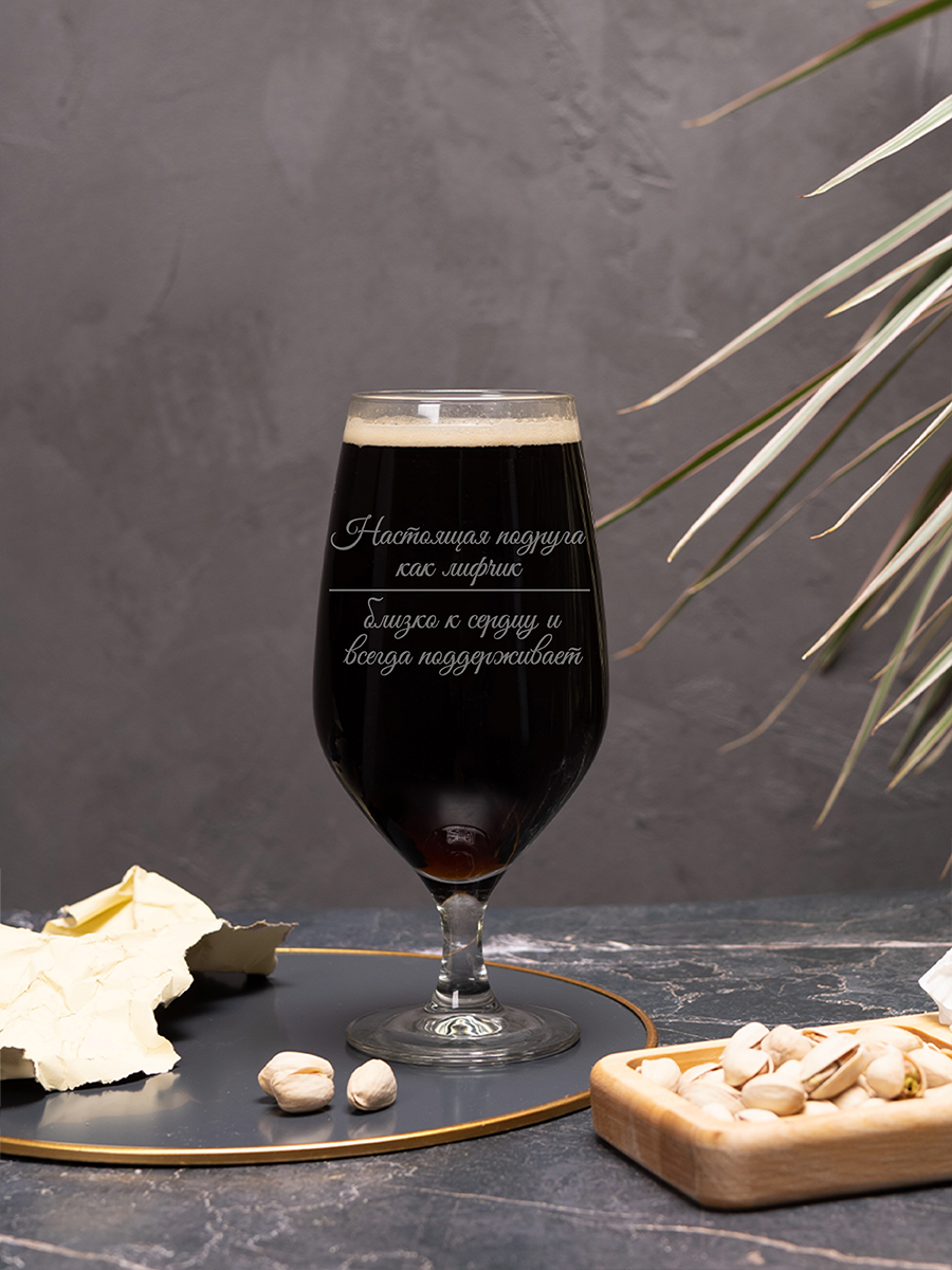 Бокал пивной “Настоящая подруга как лифчик” на ножке без упаковки 580мл подарочный с лазерной гравировкой. Бокалы для пива – это не просто посуда, это настоящее произведение искусства. Они изготовлены из высококачественного стекла, которое не только выглядит стильно и элегантно, но и обеспечивает идеальную прозрачность напитка.