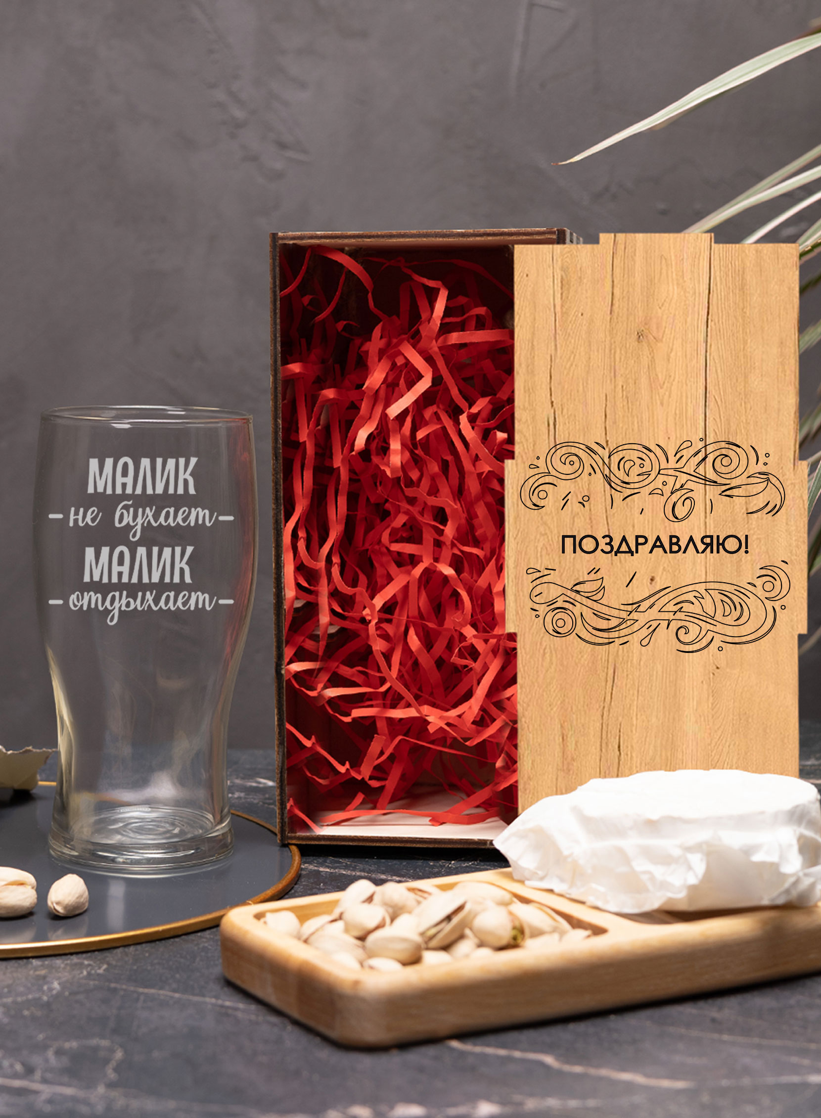 Стакан с гравировкой под пиво в подарок Малик не бухает