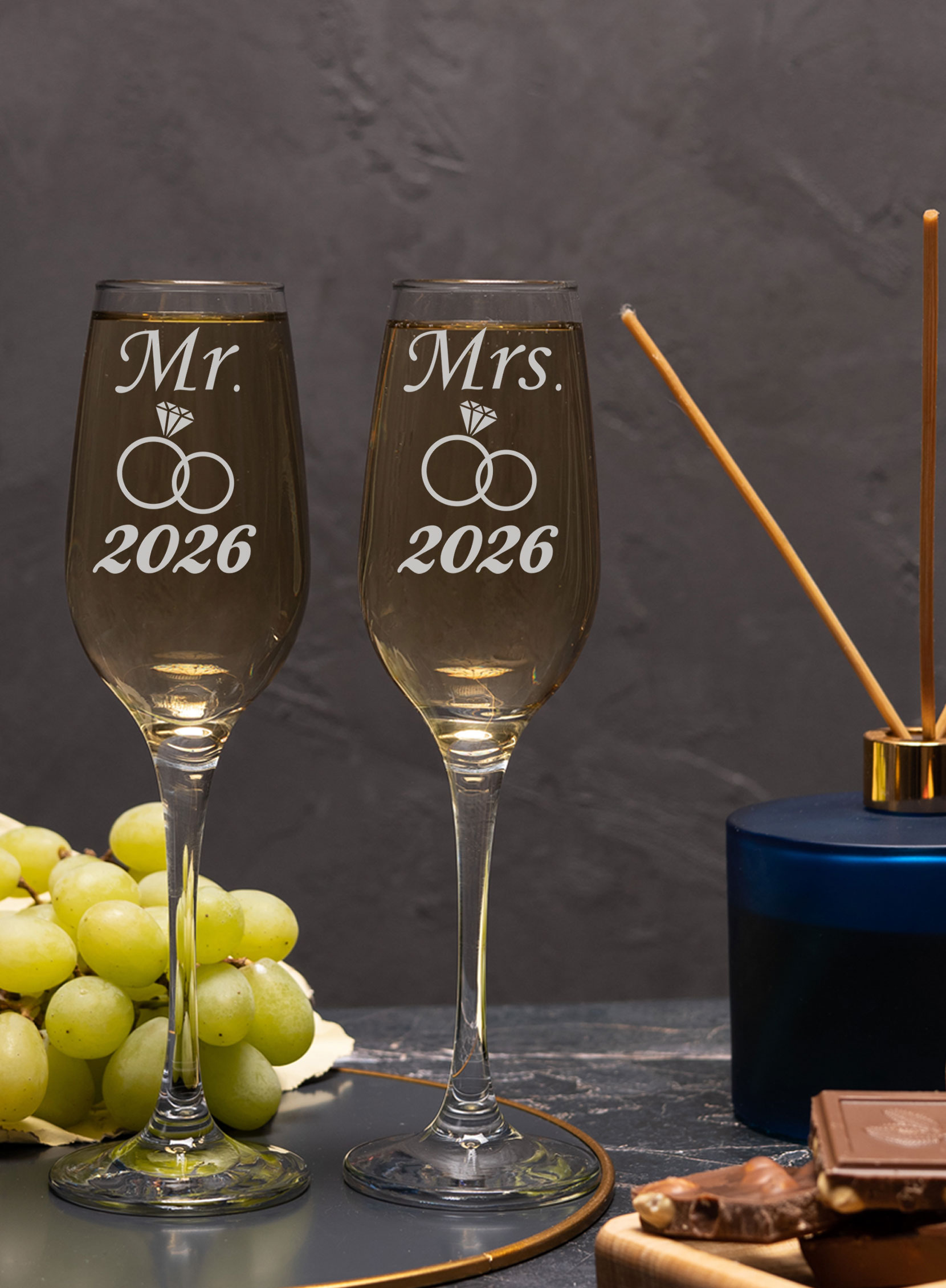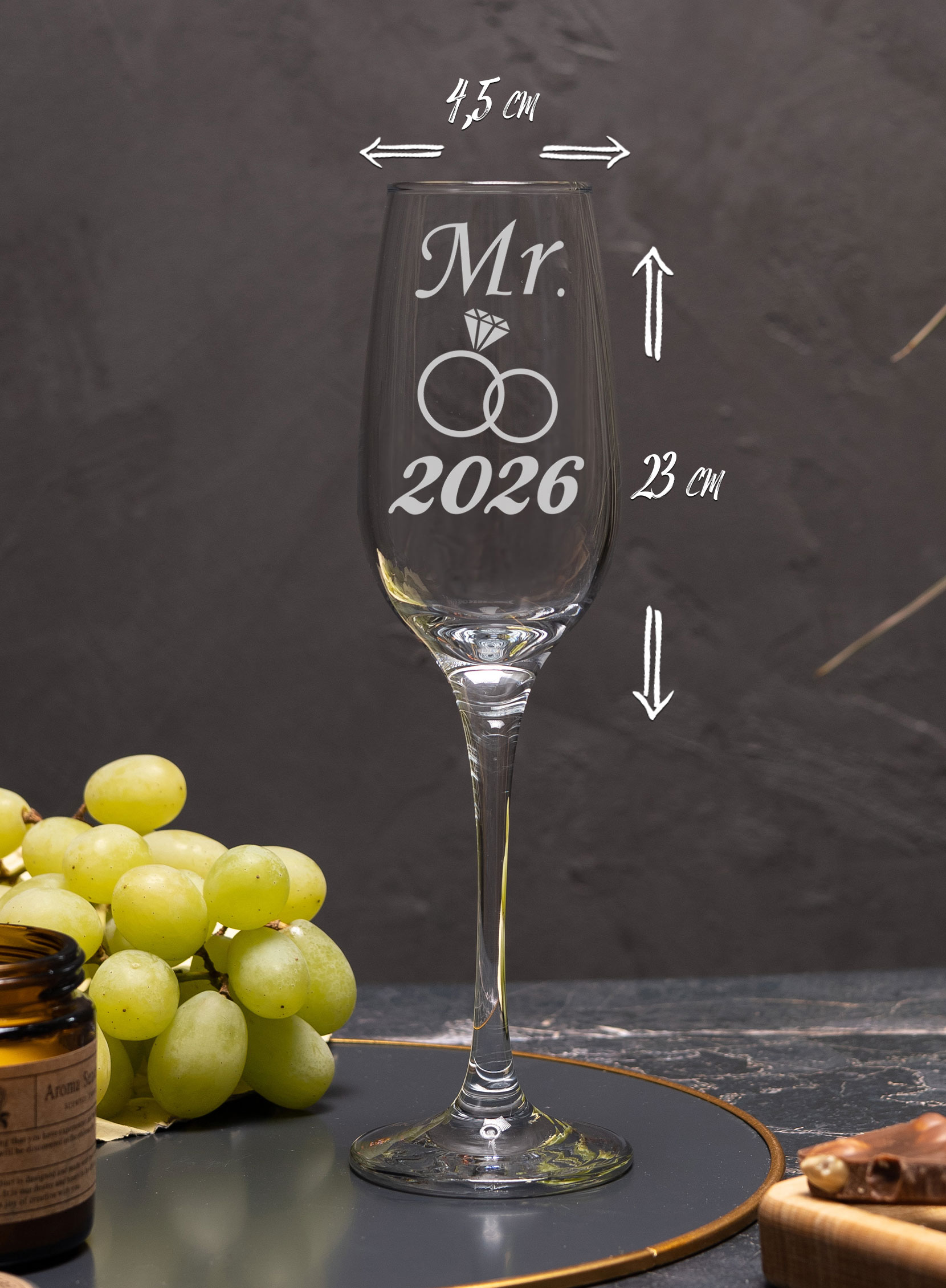Свадебные бокалы под шампанское с гравировкой Mr Mrs 2026