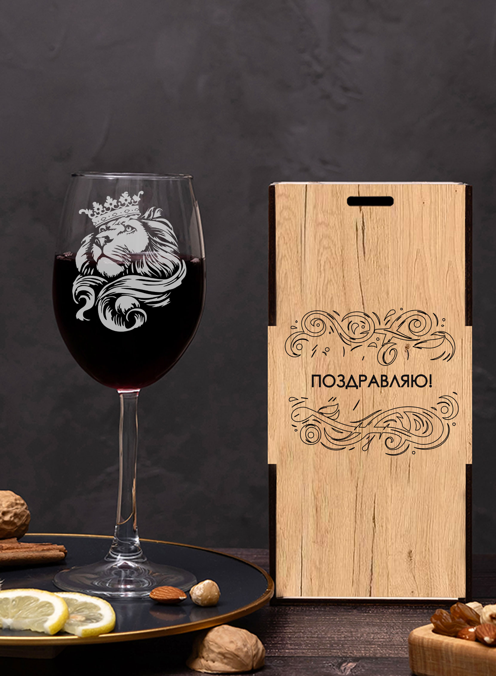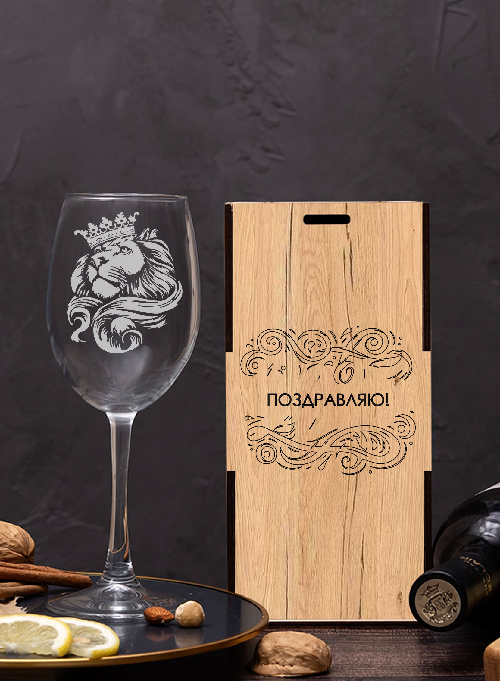 Изысканный подарочный бокал с утончённой гравировкой в виде величественного льва — это воплощение стиля и благородства в каждой детали. Изделие покоряет с первого взгляда своим безупречным исполнением и помещается в элегантную подарочную коробку из натурального МДФ, изготовленную вручную с особой тщательностью.